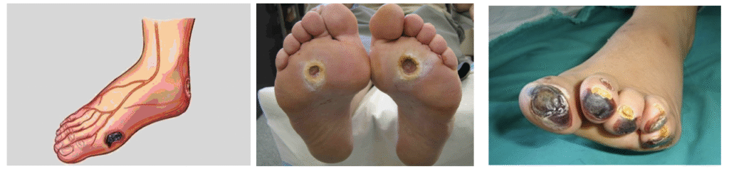 Damarlarda ve sinirlerde meydana gelen değişimlerin sonucu olarak diyabetik ayak ülserleri gelişebilir. Ancak düzenli takip ve önleyici bakım ile bu risk büyük ölçüde azaltılabilir.